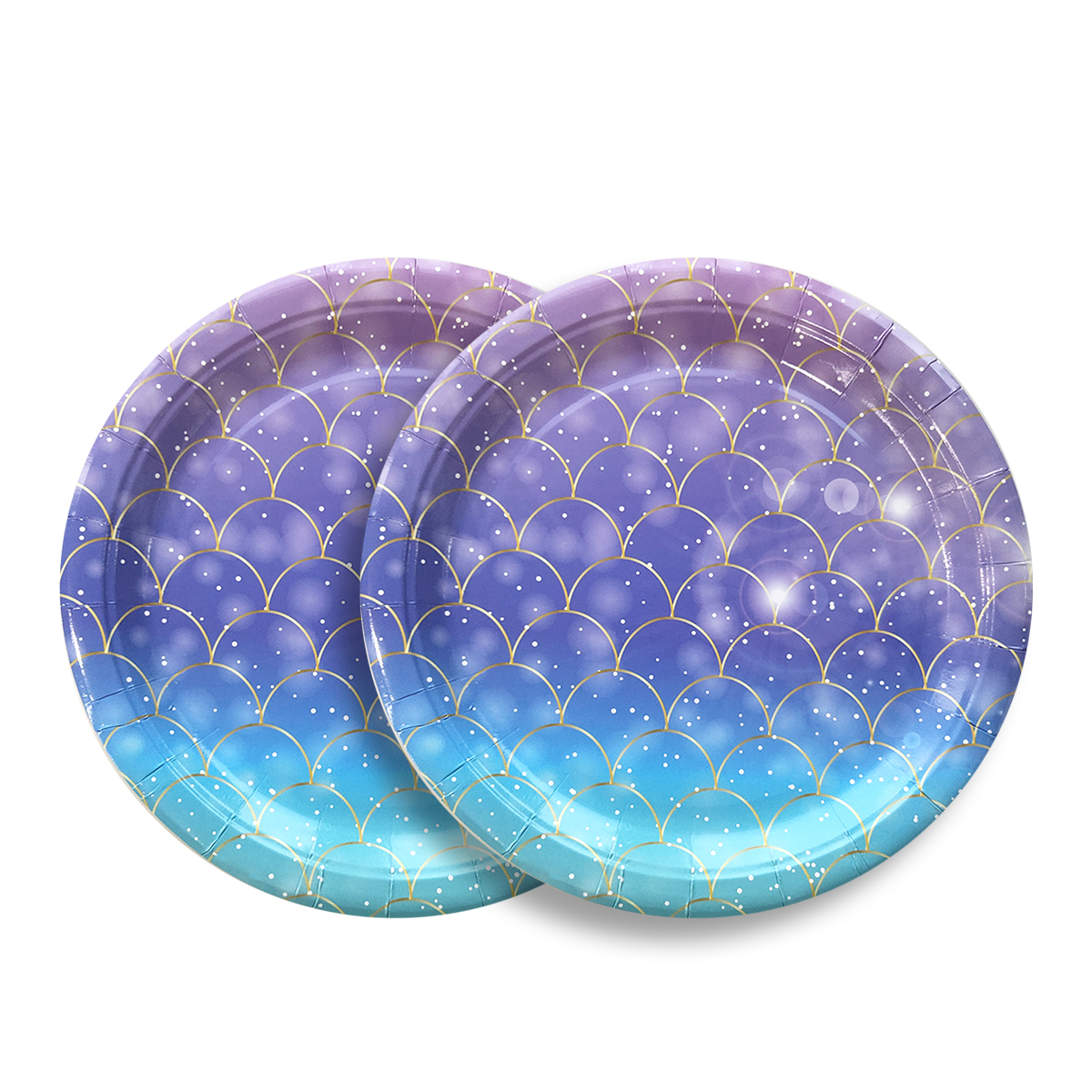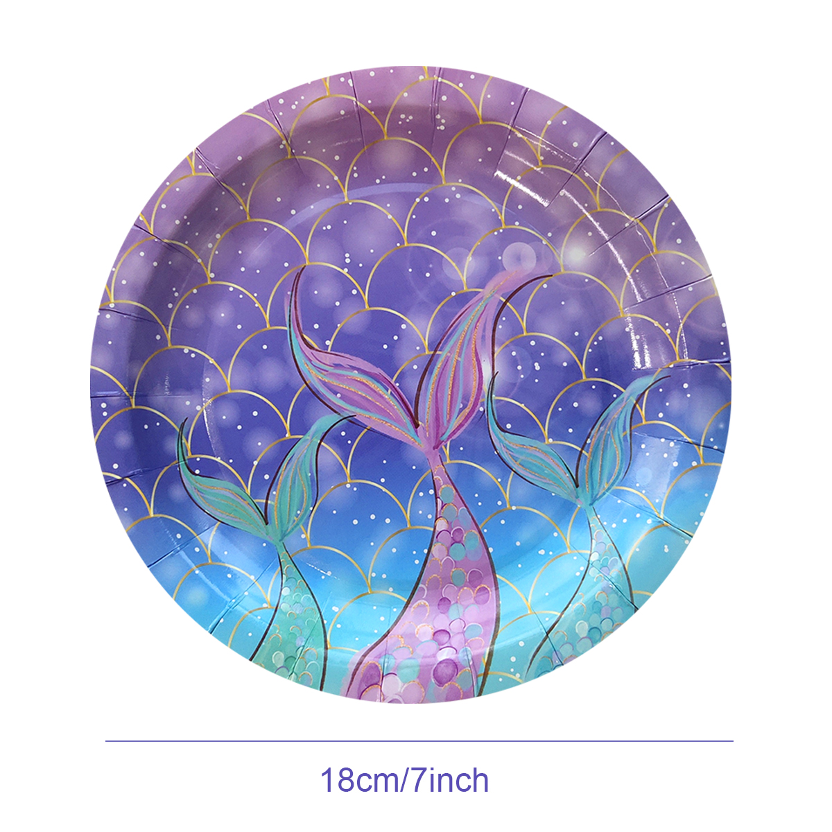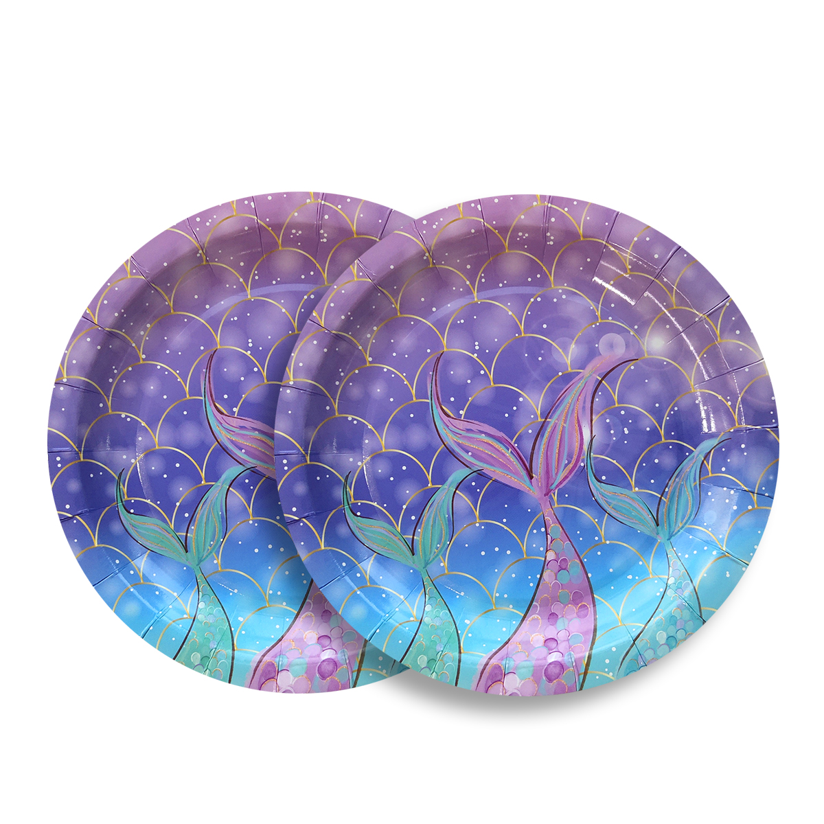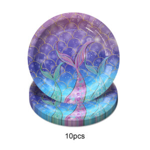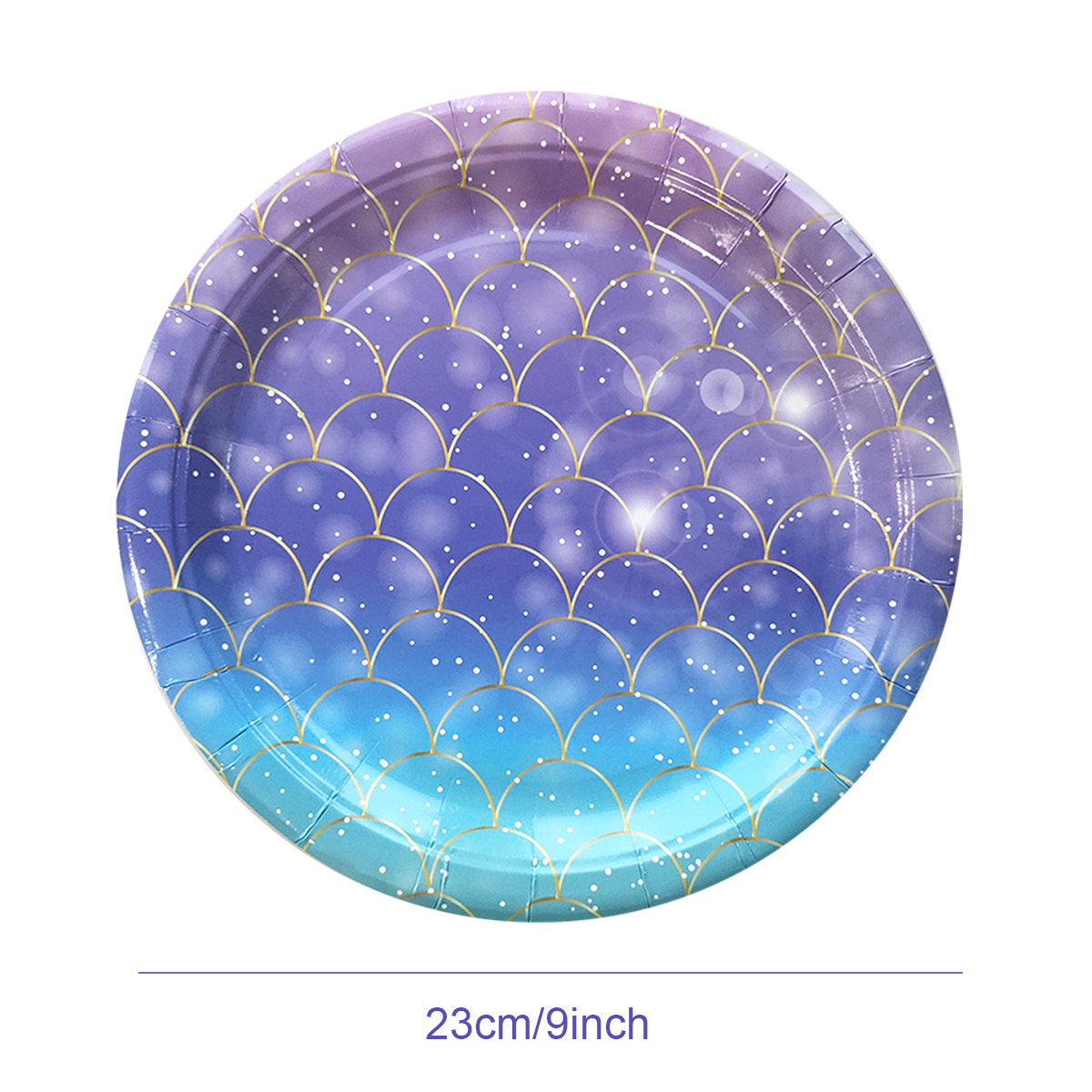 10 Guest Mermaid Fantasy Theme Fishtail Pattern Disposable Party Tableware Supplies Paper Plates