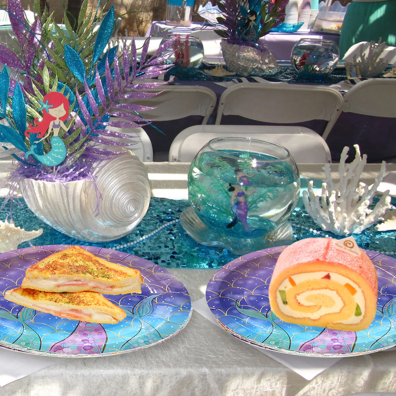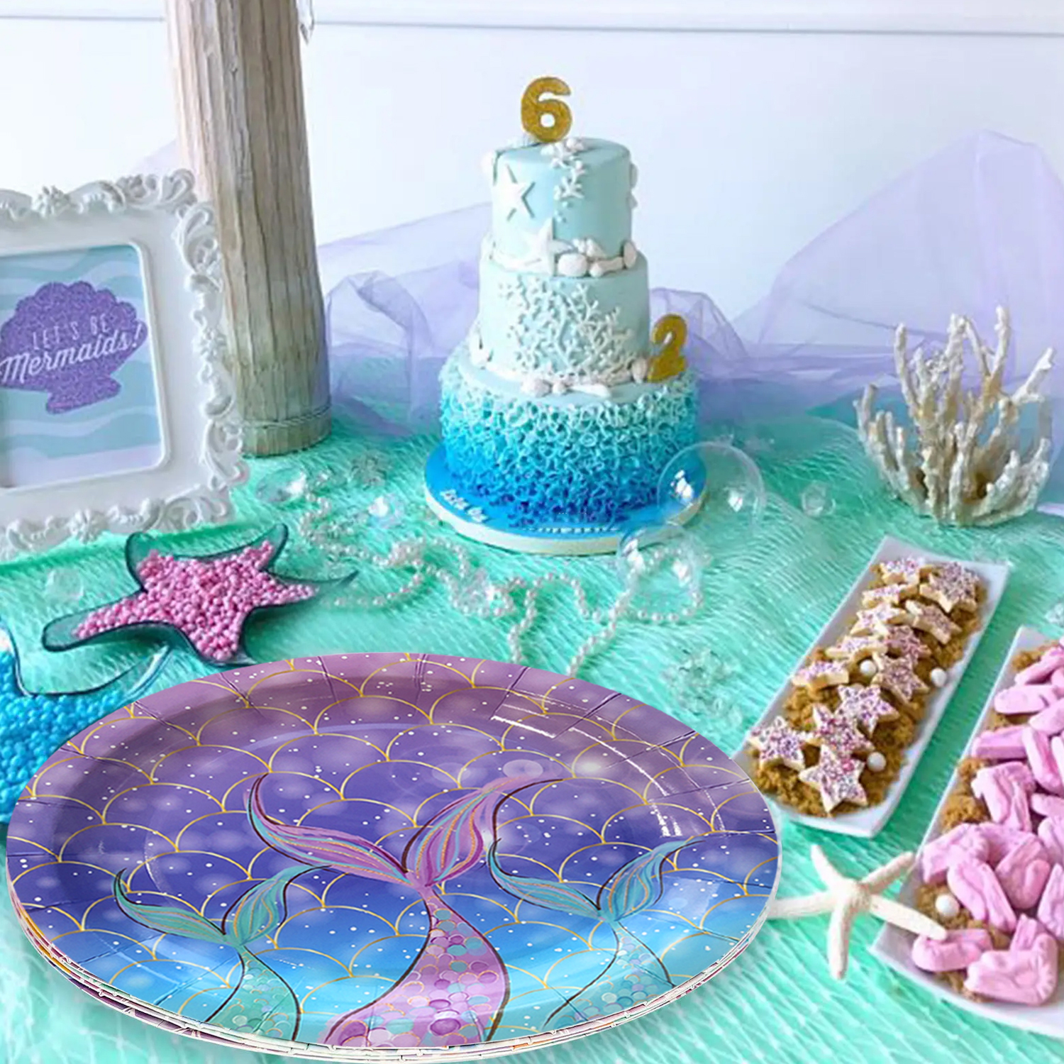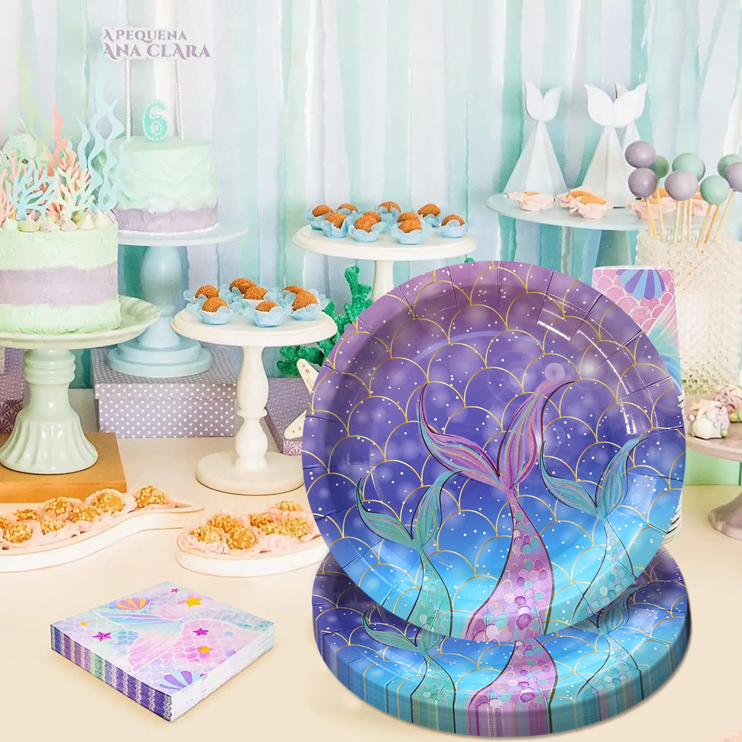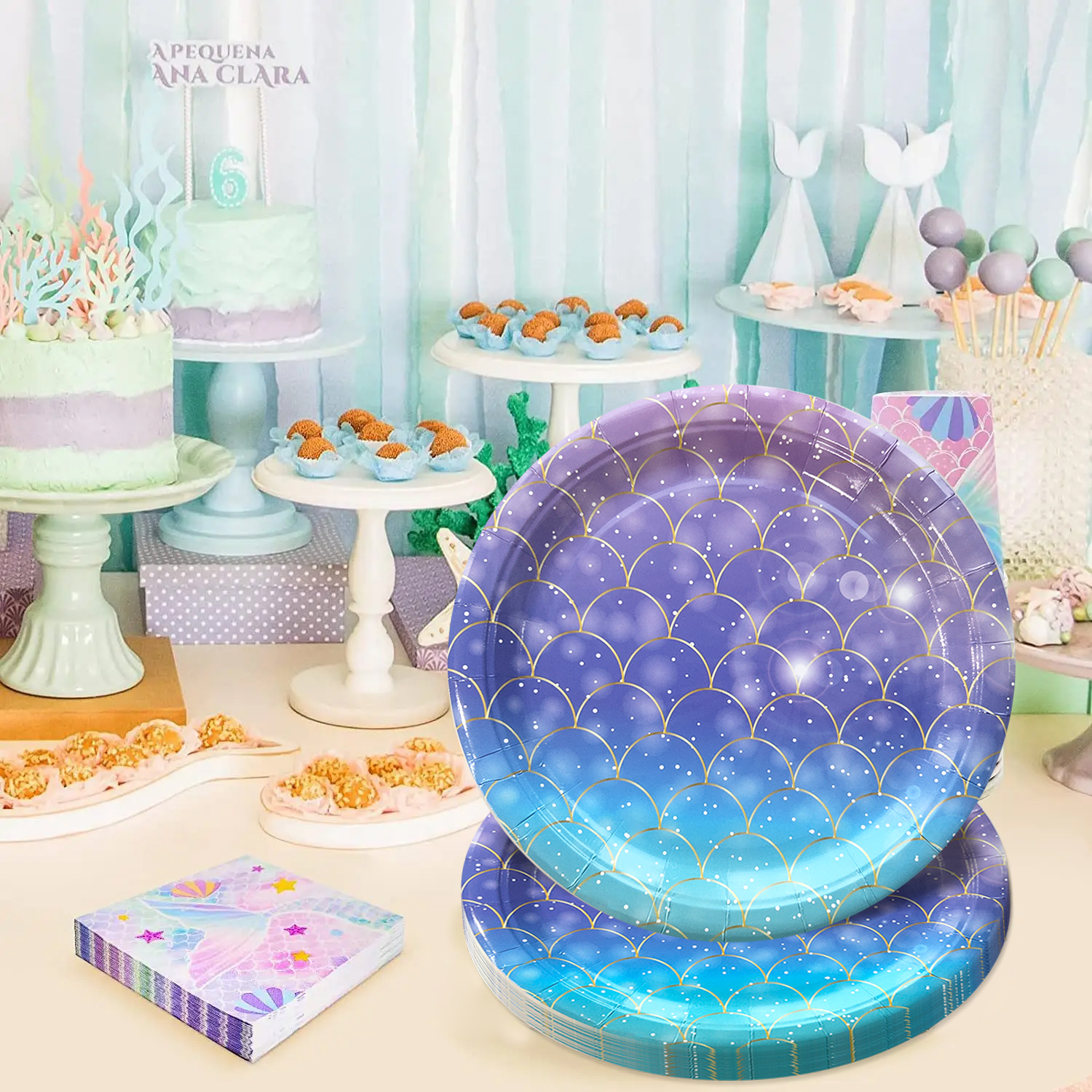10 Guest Mermaid Fantasy Theme Fishtail Pattern Disposable Party Tableware Supplies Paper Plates